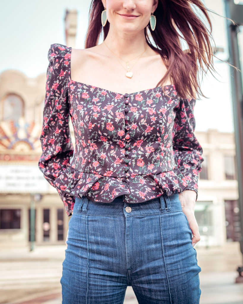 The top I’m wearing is the Lioness Sweethearts Top. It’s romantic, a little bit flirty, and all things feminine. I love it for being sweet yet feminine, and can we talk about those sleeves?! So fun.