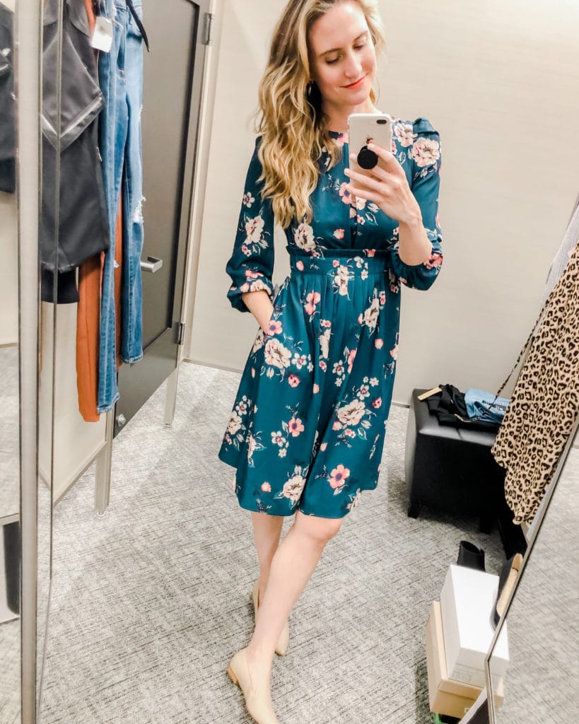 Here are a few other leopard dresses that I love from the sale. These weren’t my size in store but are still available online! BP Leopard Slip Dress (Only $38?! GETTING THIS! So cute) + Blouson Tank Midi Dress (Only $49!)