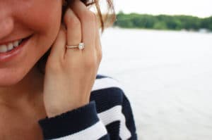 However, 7 years of dating is a long time, and throughout the years I unknowingly dropped hints of my ideal ring along the way. (We put this all together in hindsight, of course) For example, when faced with gold vs. silver, I almost always pick gold. I love the timeless elegance of the metal and also feel that it compliments my skin tone better than other metals.