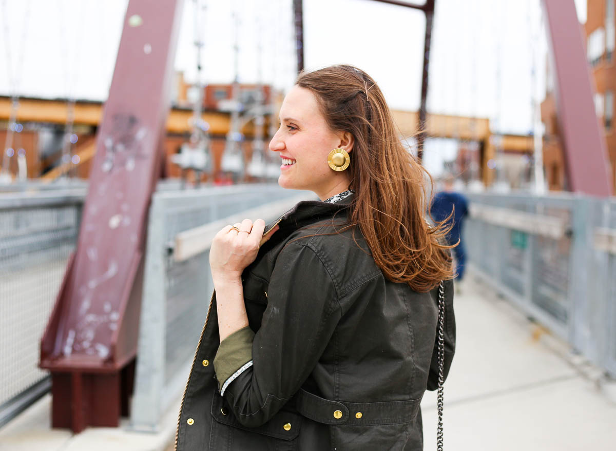 My booties are boutique finds, but you can shop similar ones here & here. I love the western style and that the heel height isn’t too tall. My jacket is an ever-popular utility jacket that is a total closet staple as well – every girl needs an olive-toned spring jacket in their wardrobe! (Loving this & this option.)