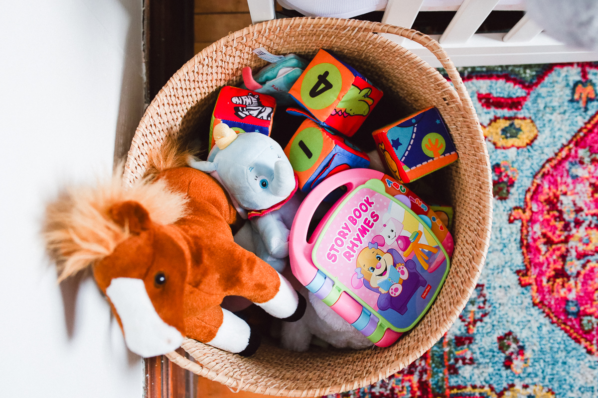 - Wicker toy basket: Similar here and here