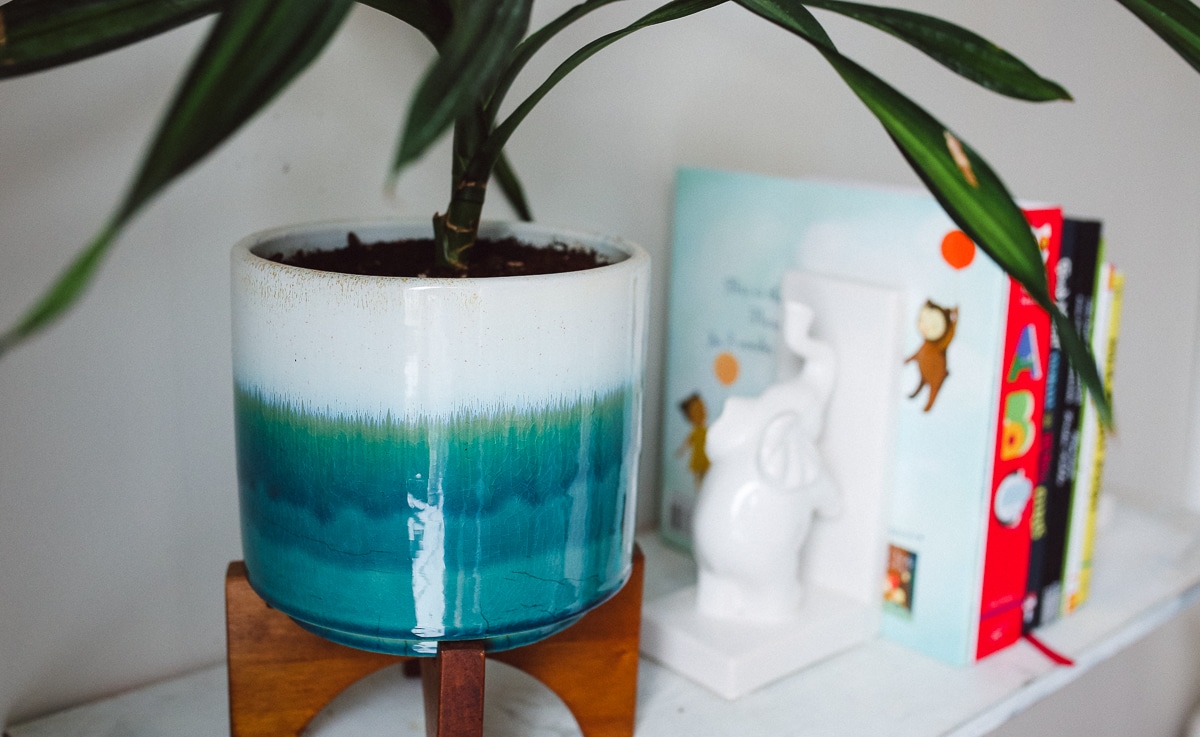 - Turquoise plant pot: Planter via West Elm. Similar finds here and here.