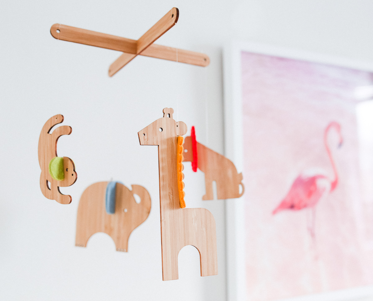 - Wooden animal mobile: Similar finds here and here