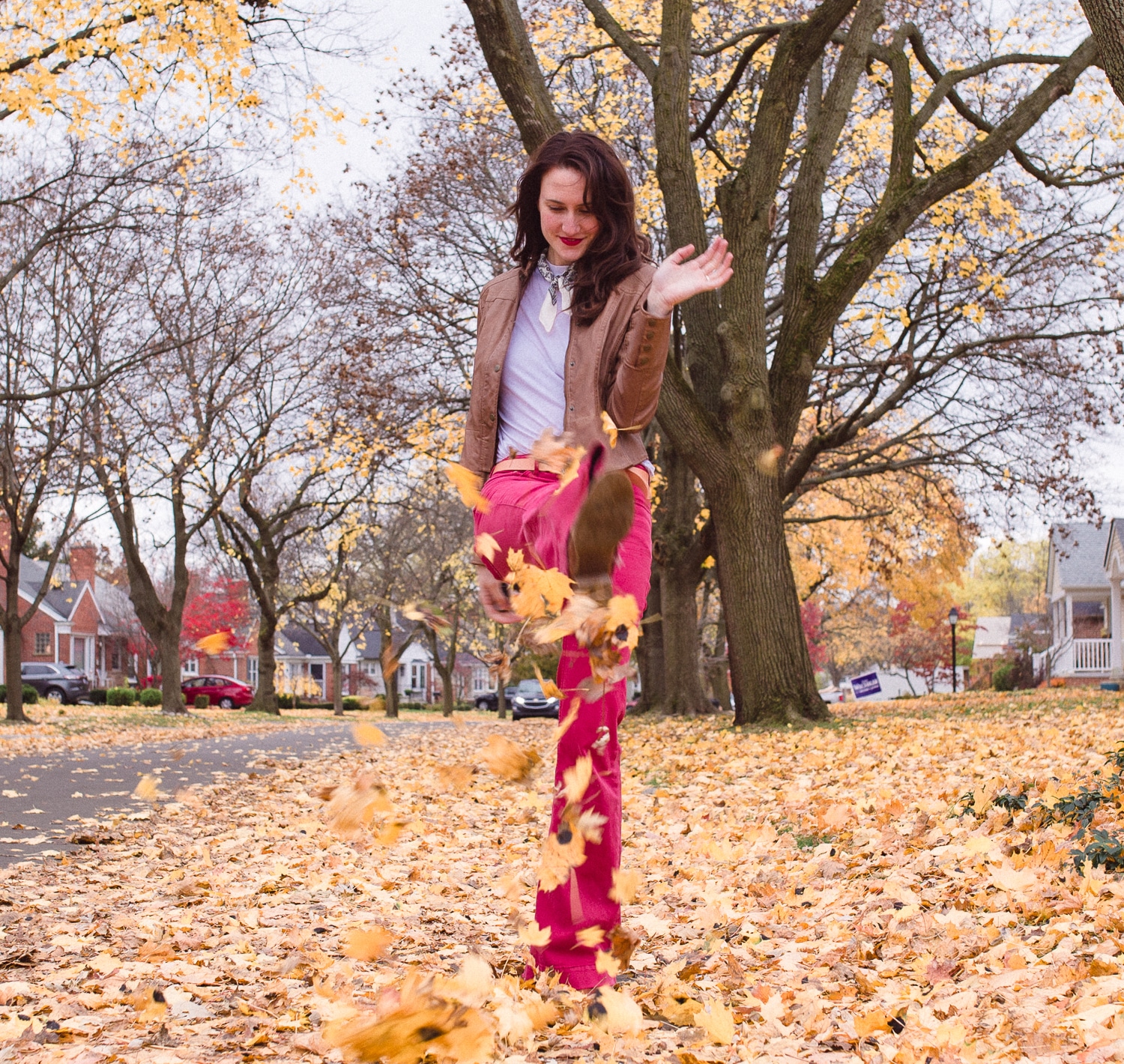 I took these photos last week, when the leaves were still decorating the ground and some even lingered on branches. You wouldn’t even recognize the same street today. In fact, I’m typing this while watching snow fall onto an already-accumulated inch on the ground, and this is our third snowfall in less than a week!