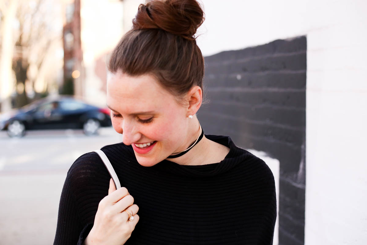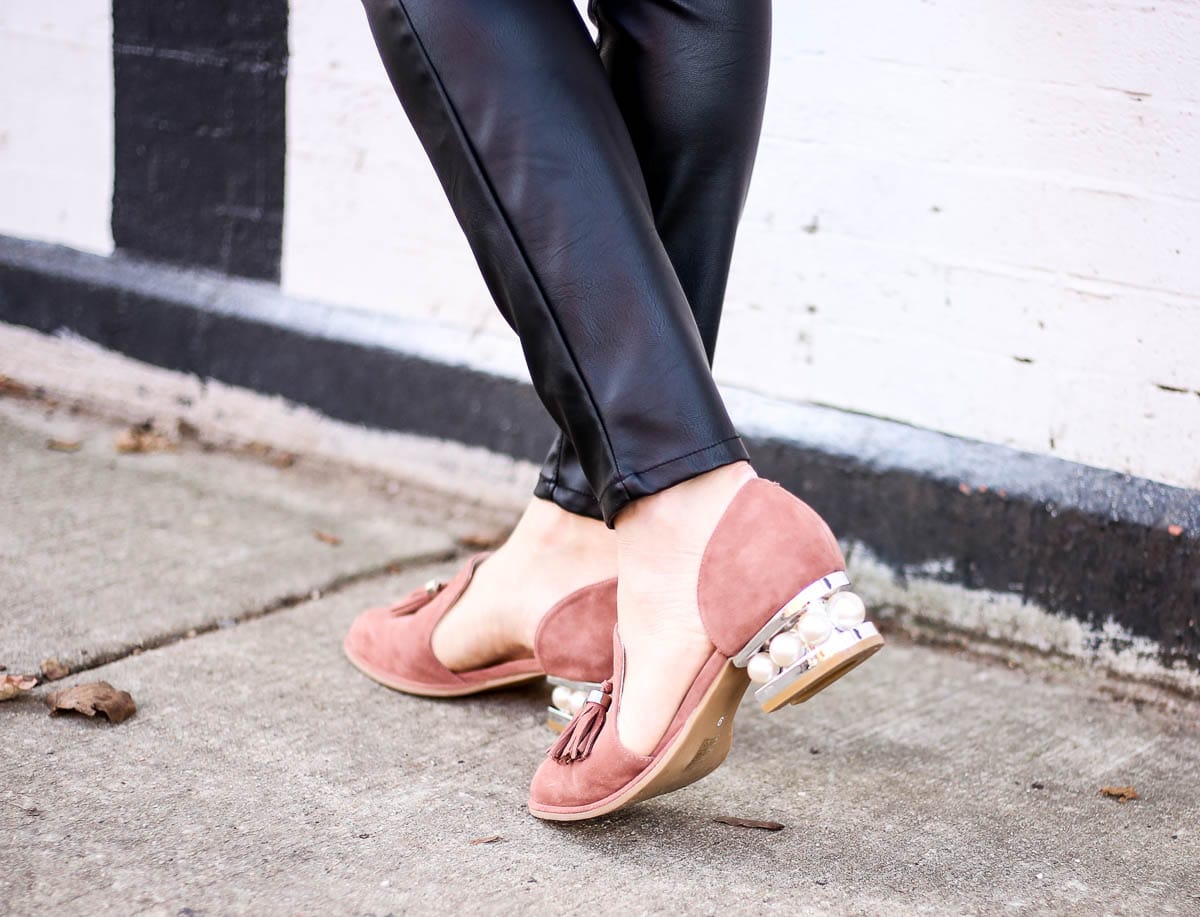 In this look, I paired the oxfords with faux leather pants (also loving these ones), a Free People black turtleneck that is so comfortable, layered choker necklaces (Gold options here & here, and black options here & here) and little pearl earrings to tie the shoes with it all. It was a really fun look in which I felt equal parts classy, feminine and trendy.