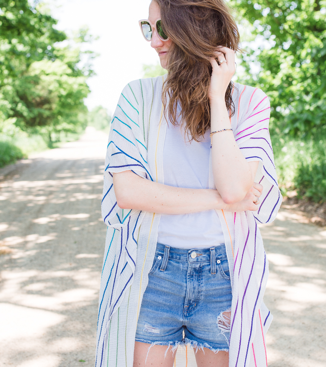 Shorts: Levis 501 Jean Shorts. Shop Levi’s here! | Kimono: Via Evereve, but no longer available. I adore this lace option from Sole Society and this embroidered option is so pretty! | Sandals: Everlane Bridge Sandals | Sunglasses: Quay blush sunnies, similar finds here and here.