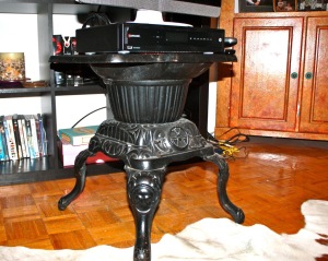 I found this black-iron stove from 1890 (ish). I had just moved into my Chicago studio and desperately needed a TV stand. It was perfect. Better yet, it was $25. (!!!!)
