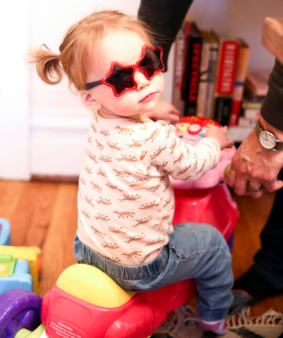 I love that photo of your daughter with her glasses- so cute! Also, did you get the clear pair of those Warby Parkers? I think they look so cool! I can’t wait to see them on you! It’s tempting to get more than one pair when they’re so affordable. I’m also loving that dresser and the knobs. Looks like a fun place to bring home a little baby!