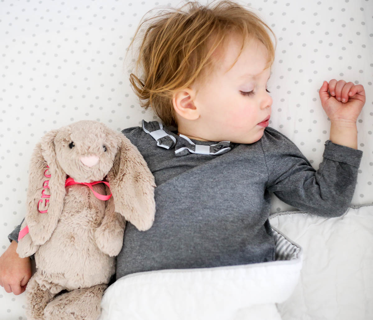 Cute fact: While Doug and I call Gracie “Goose”, my family calls her “Bunny”. Lucky gal has two of the cutest nicknames! Anyways, I thought this monogrammed Jellycat bunny from Peekawhoo was so adorable, and fitting to her nickname, it’s become Gracie’s favorite stuffed animal! It’s so soft; she loves carrying it around and rubbing its ears.