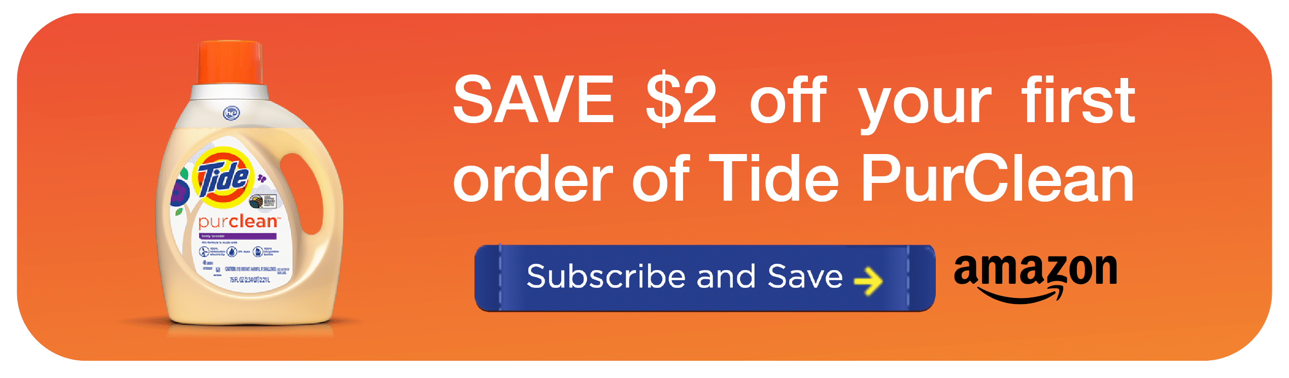 First, I ordered it off of Amazon, which is a busy mother’s dream. We’re Prime members, so getting the goods was literally as simple as click, order – wham-bam – delivered in 2 days. So gosh darn easy that I often actually wonder what people did without it, especially in time crunches like I’m frequented with on the regular. And if, like me, the option to subscribe to a timely delivery is a lifesaver, then make sure to take advantage of the $2 off coupon from Amazon when you subscribe and save for delivery of Tide PurClean!