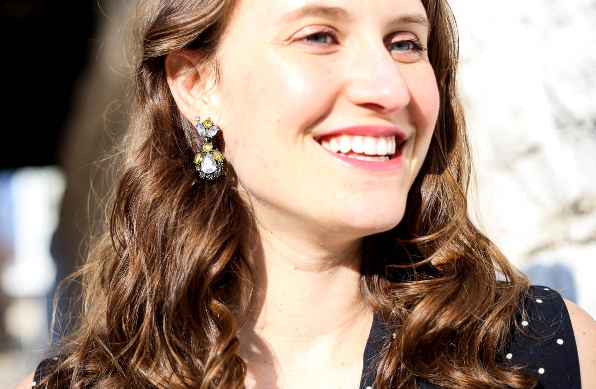 To play up the masculine side of it I wore my oxfords, and to play up the feminine side, I paired the look with some drop earrings and wavy hair.