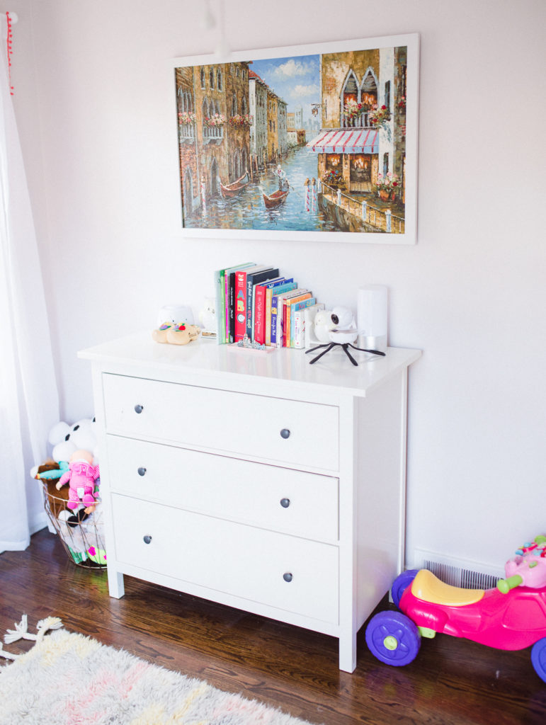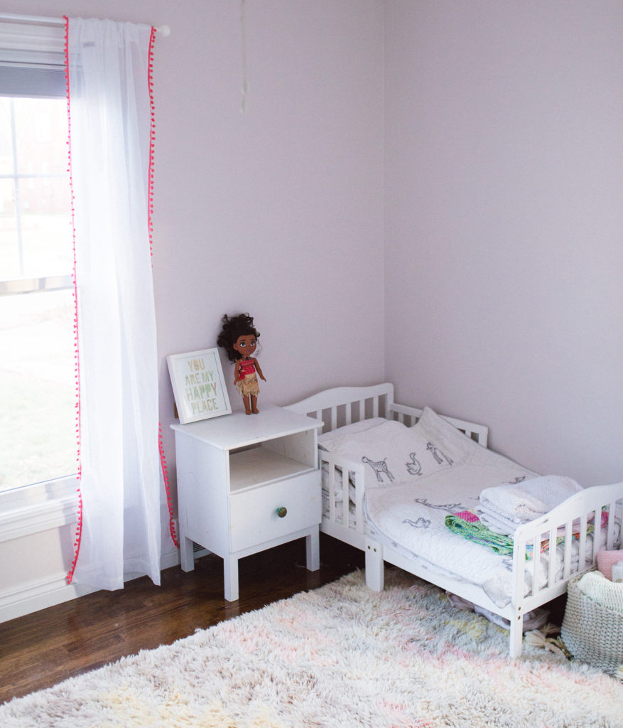To-Do’s: All artwork hung on walls. Need to better organize their toys. I’m not loving Grace’s dresser set up, and some of Josephine’s shelving set up, so will be revisiting those items. Will also be updating Grace’s bed to a twin bed soon – she’s ready to be out of the toddler training bed!