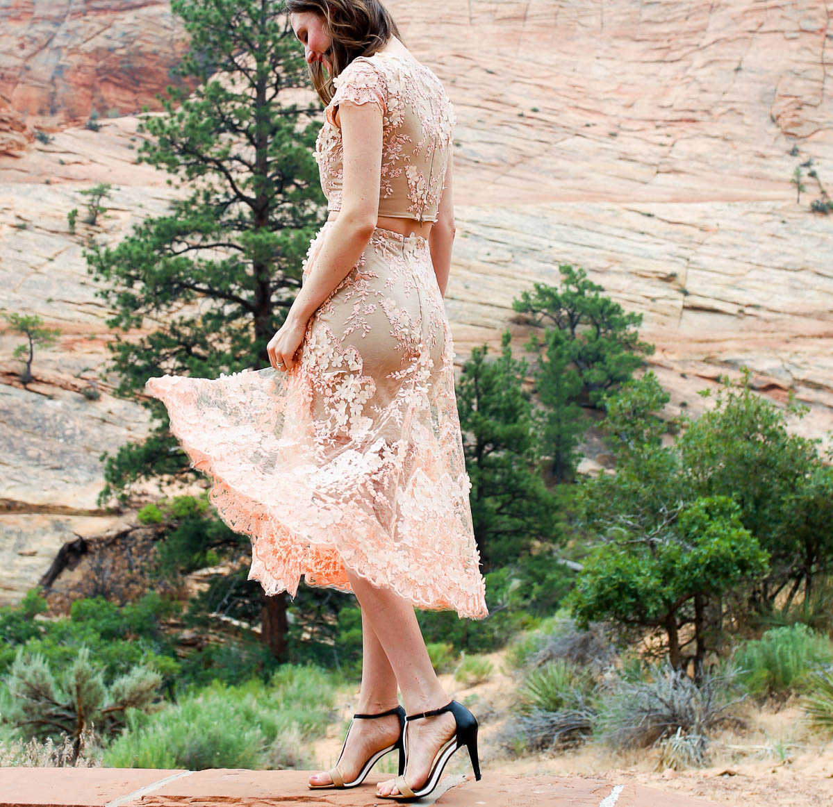 I wasn’t planning on blending in with this look – the dress that I wore to the wedding rehearsal of my cousin Kristin – but call it coincidence or fate, I was one with the sandstone cliffs. (It also comes in white, and the black option is 40% off right now!)